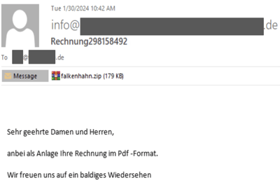 Die gute Nachricht ist, dass die Angreifer nicht sehr gut im Social Engineering sind. Laut Unit42 haben die E-Mails, die sie verwenden, einen Zip-Dateianhang: